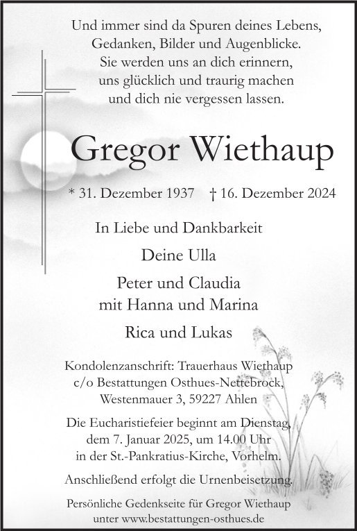 Zum Tod von Gregor möchten wir und Deiner Familie