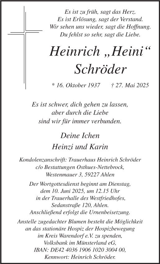 Wir werden Heini immer in guter Erinnerung und in unseren Herzen behalten