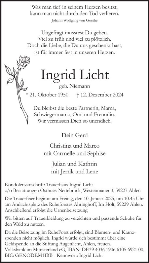 Ingrid Lichtgestorben am 12. Dezember 2024
